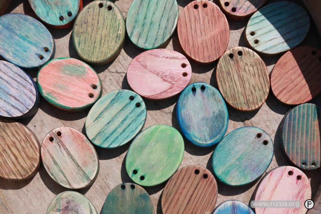 Drewniana biżuteria z czarnego dębu. drewniane grzechotki dla dzieci.
