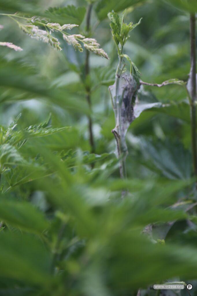 W pierwszej fazie jak larwy są małe, to oplatają pajęczynami szczyty pokrzyw tak najłatwiej je zauważyć.
