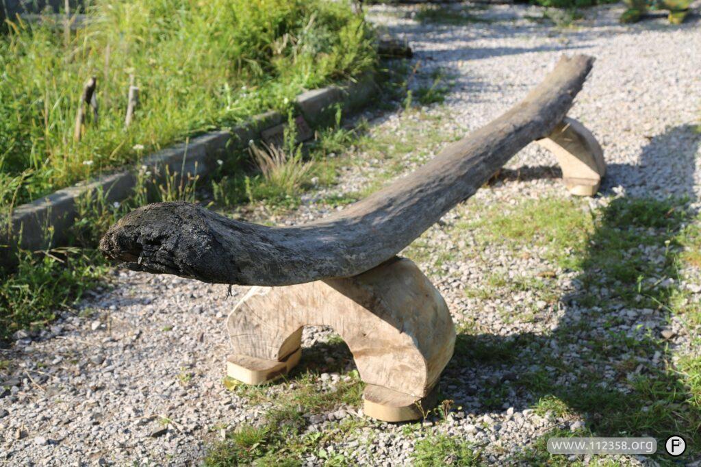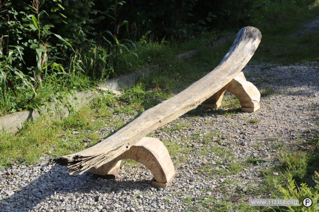 Ławka zrobiona z jednego dużego pnia wyrzuconego przez Wisłę koło mojej pracowni.