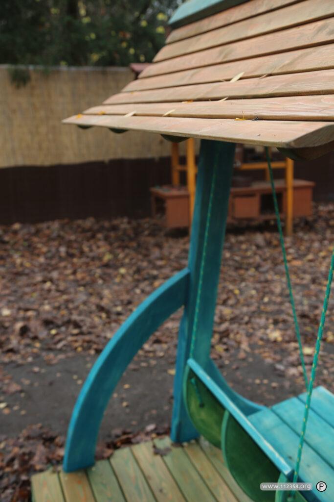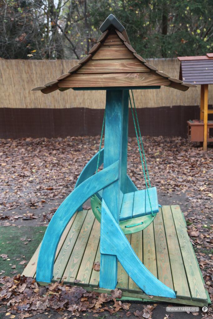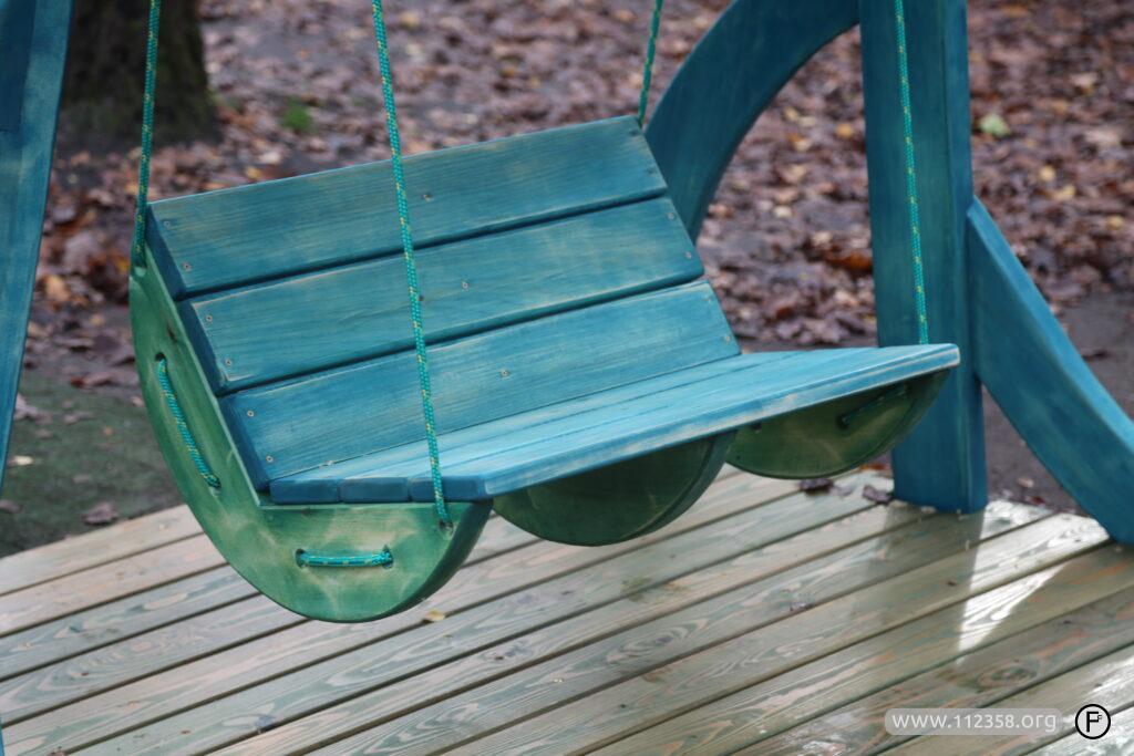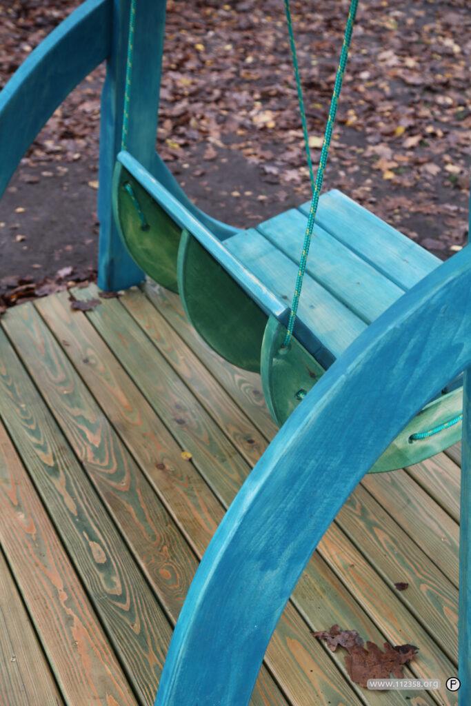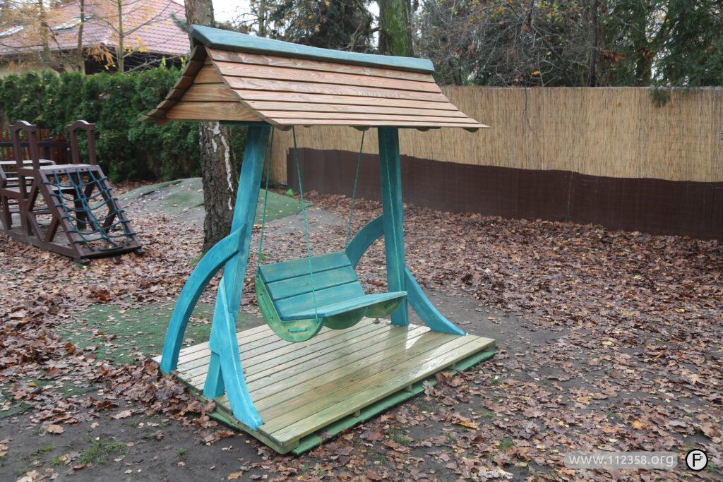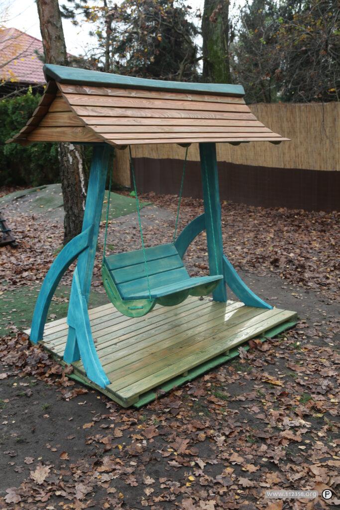 Huśtawka jest zrobiona z drewna świerkowego, topolowego i „akacjowego” Przeznaczona jest dla dzieci i dorosłych.