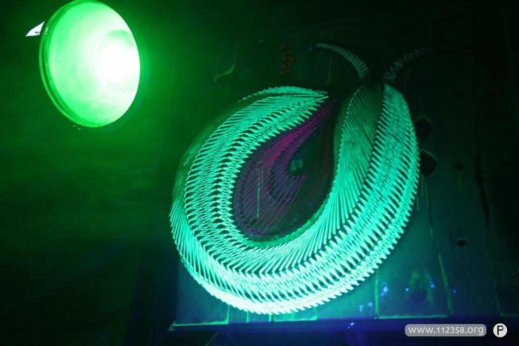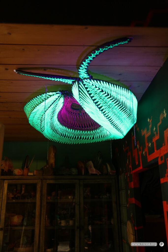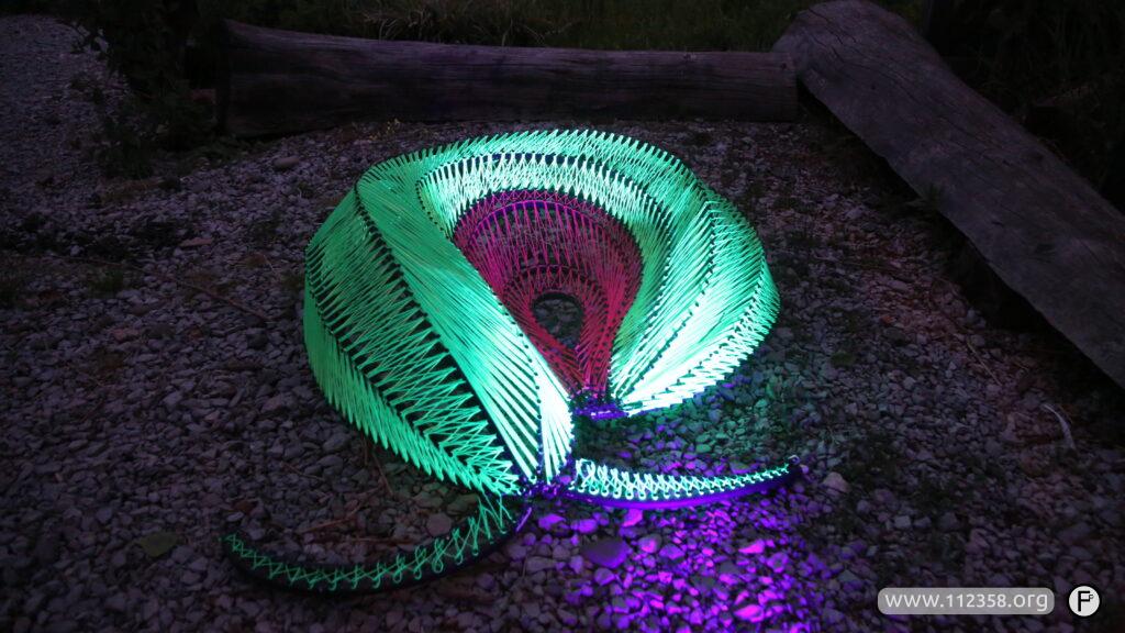 Sznurki świecą w świetle UV. Rzeźba przedstawia symbol Ślimaczyzmu, czyli wymyślonej religii bez zasad z przewodnim hasłem wszystko wolno. www.slimacyzm.org