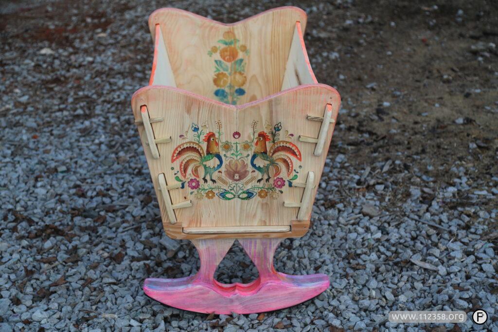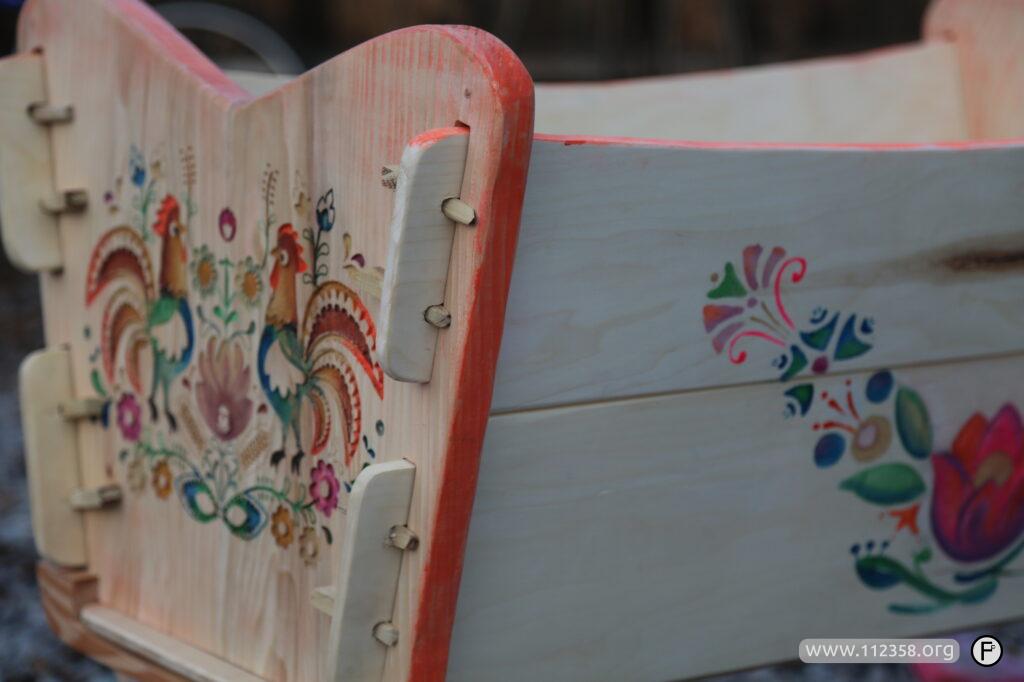 Kolejna kołyska to klasyczny model,składana kołyska na prezent dla rodziny w Indiach. Miało być kolorowo i tradycyjnie więc są ludowe wzory z wycinanek.