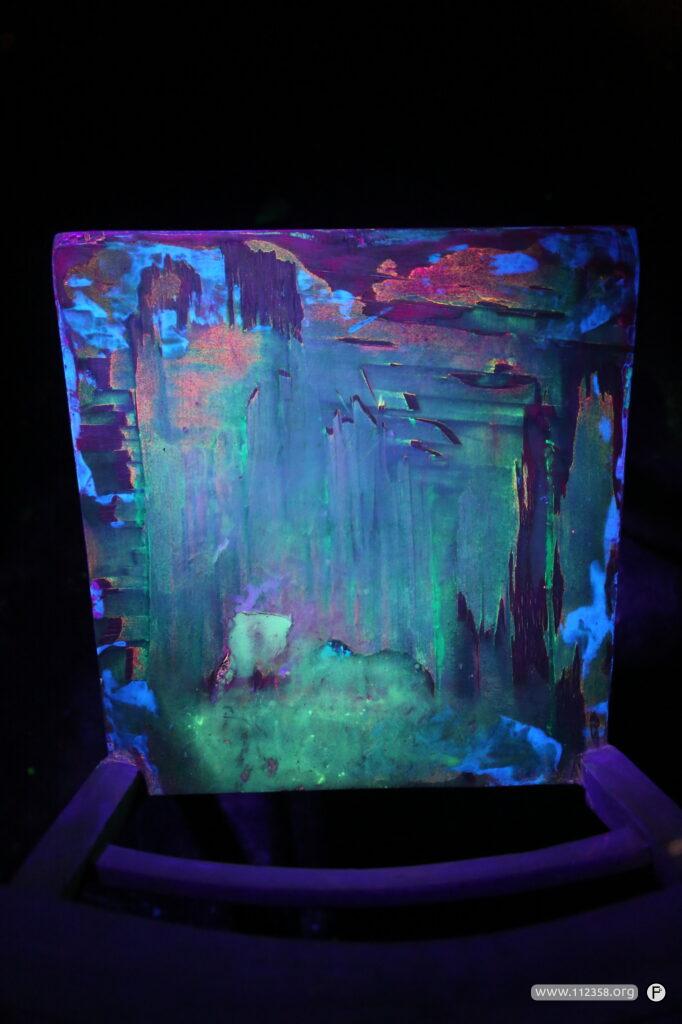Pomalowałem wystające fragmenty różnymi farbami i pigmentami UV. Jest też jeden fragment świecący w ciemności.