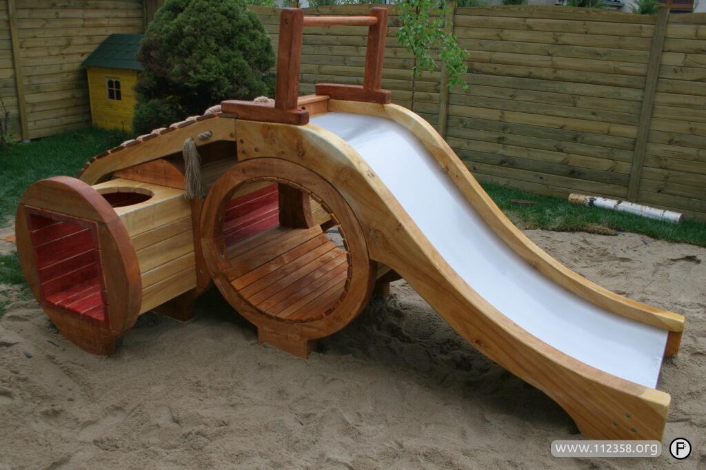 Polecam więc mniejsze ślizgi ustawione na wysokości jednego metra. Z takiej zabawki dziecko może bezpiecznie spaść na glebę i ma super zabawę.