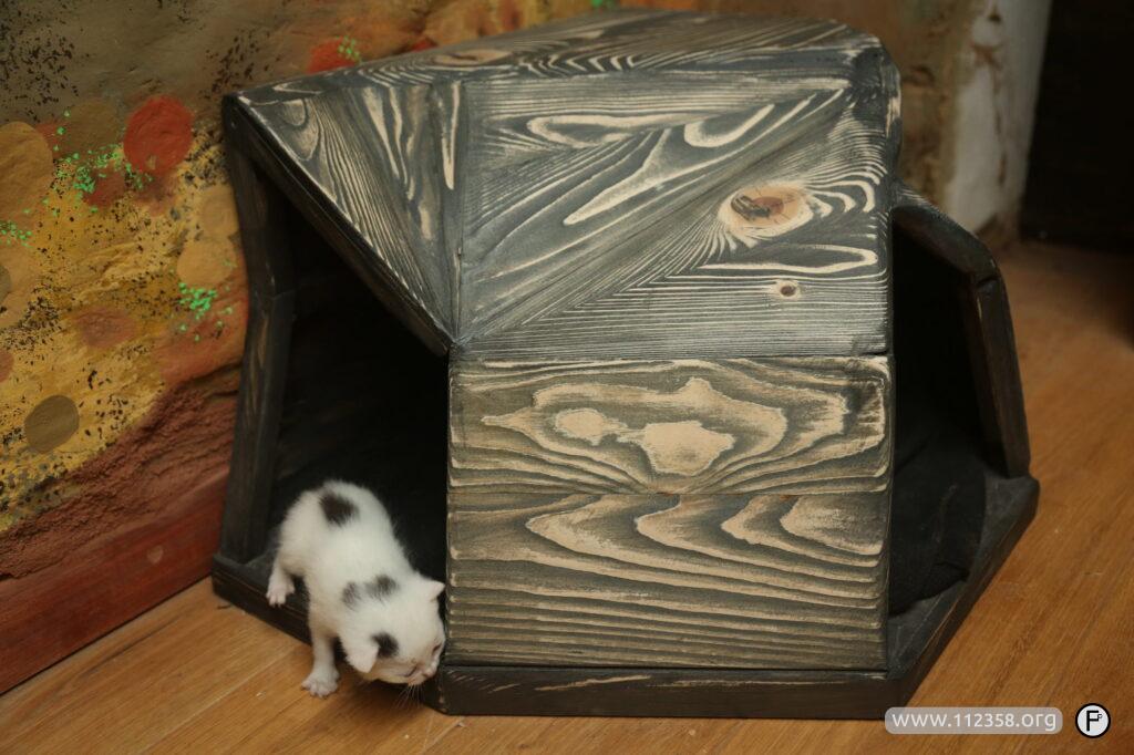 Domki mają taką wielkość, aby kot się bezpiecznie czuł, z tego powodu mają też drugie wyjście.