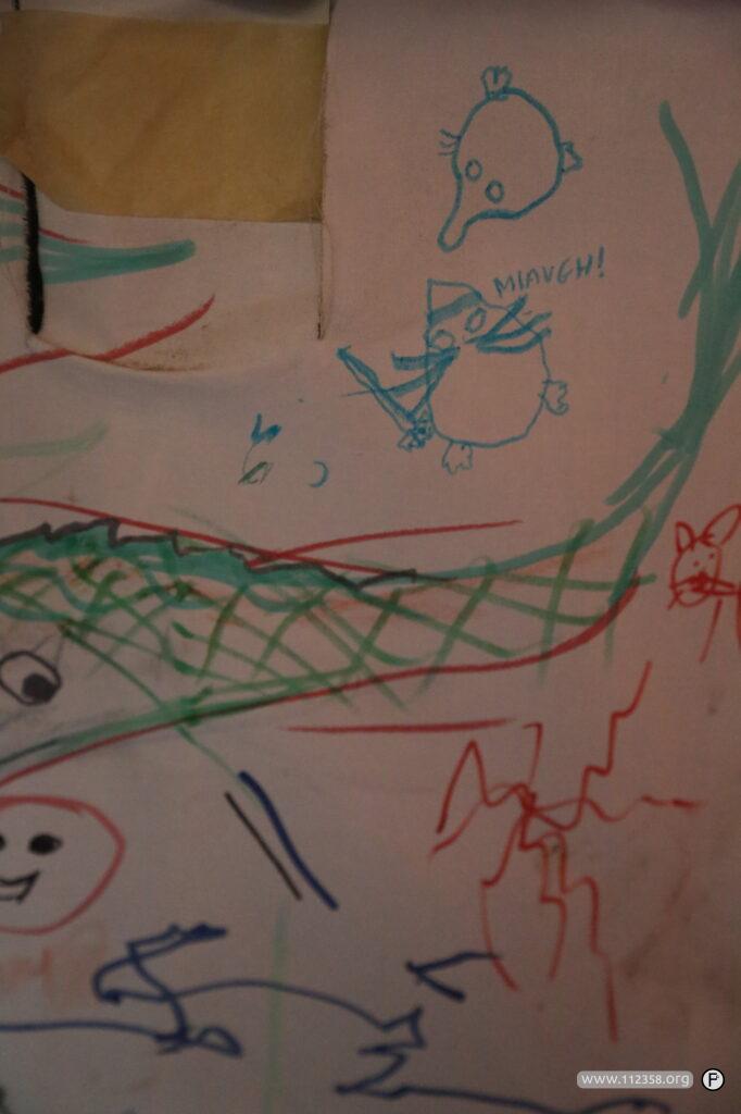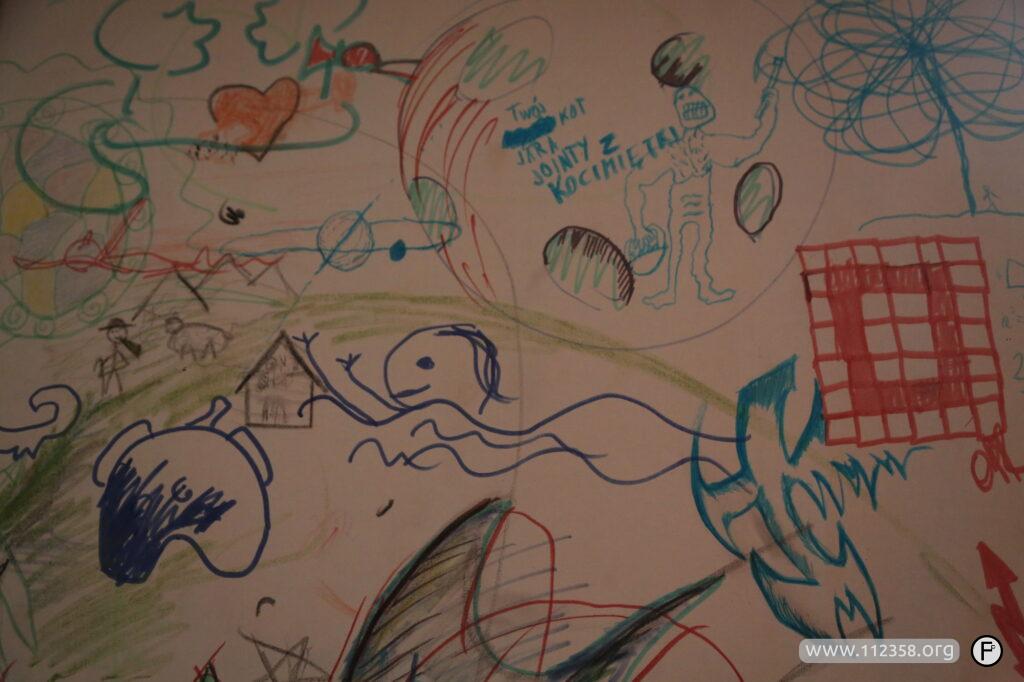 Rysunki na dole robiła moja córka, Lila jak miała kilka lat i rysowała gdzie dosięgała, później nauczyła się wychodzić na taboret i malowała wszędzie.