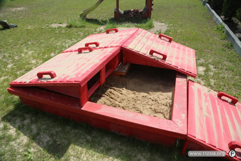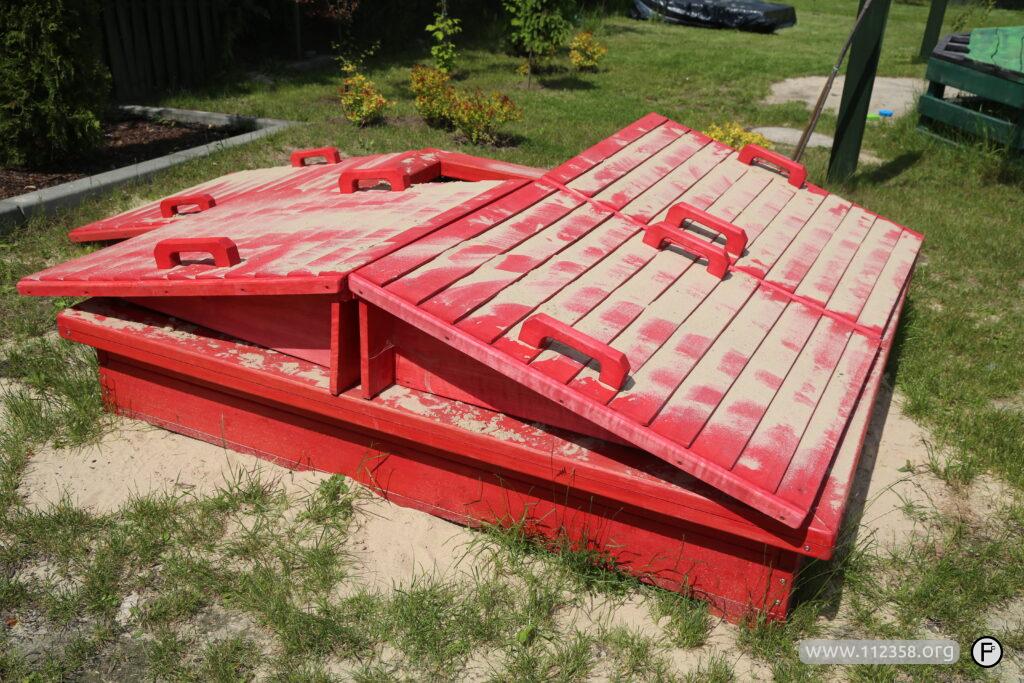 Piaskownica jest zgodna z normami i nadaje się do przedszkola.