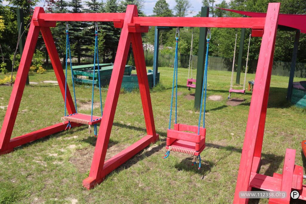 Jedna huśtawka równoważna. Huśtawki spełniają polskie i europejskie normy.