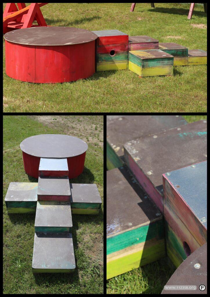 2)Przestrzenna gra w klasy złożona z bębnów, dzieci skacząc wydają różne dźwięki ,więcej informacji na: