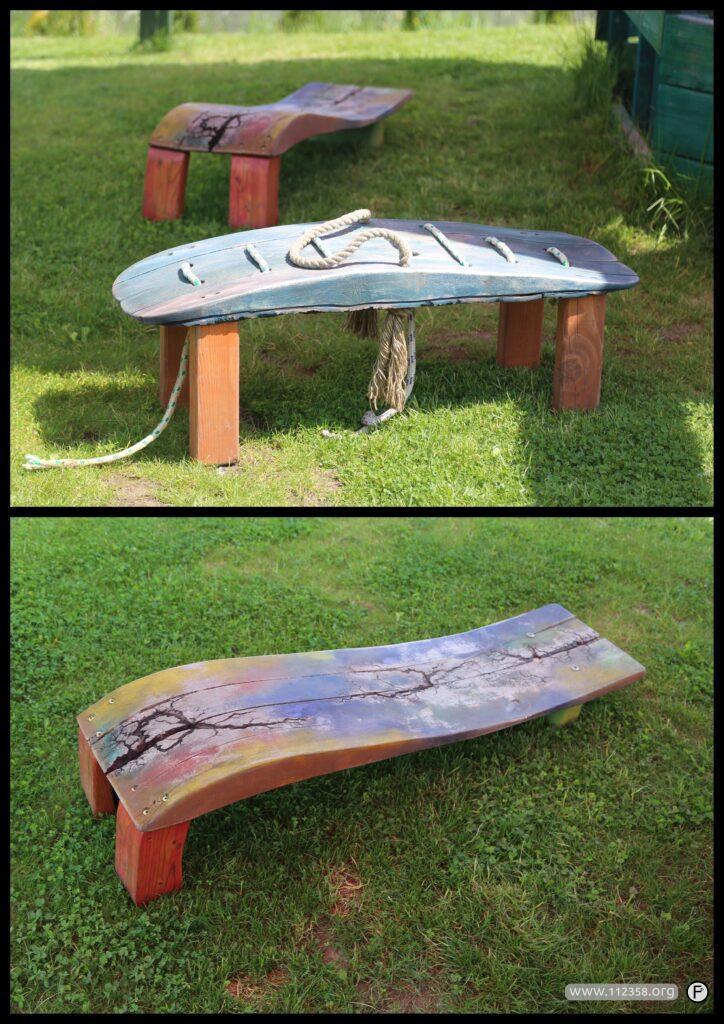 Drewniana zjeżdżalnia z leżanką. Zrobiona jest z drewna topolowego i blachy nierdzewnej.