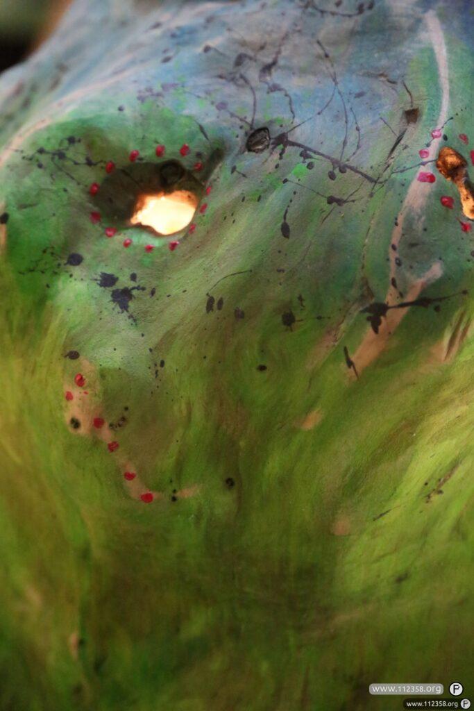 Pomalowana jest farbami Uv i zmienia kolory, w zależności od oświetlenia. Wiklinową konstrukcję zrobiła Patrycja Duda i jest ona pokryta farbą luminescencyjną, dzięki temu świeci chwilę po zgaszeniu światła.