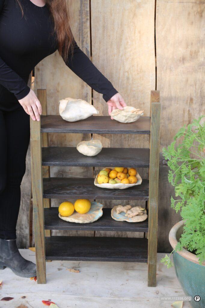 Nogi zrobiliśmy z wiązu a półki z drewna oklejonego fornirem dębowym.