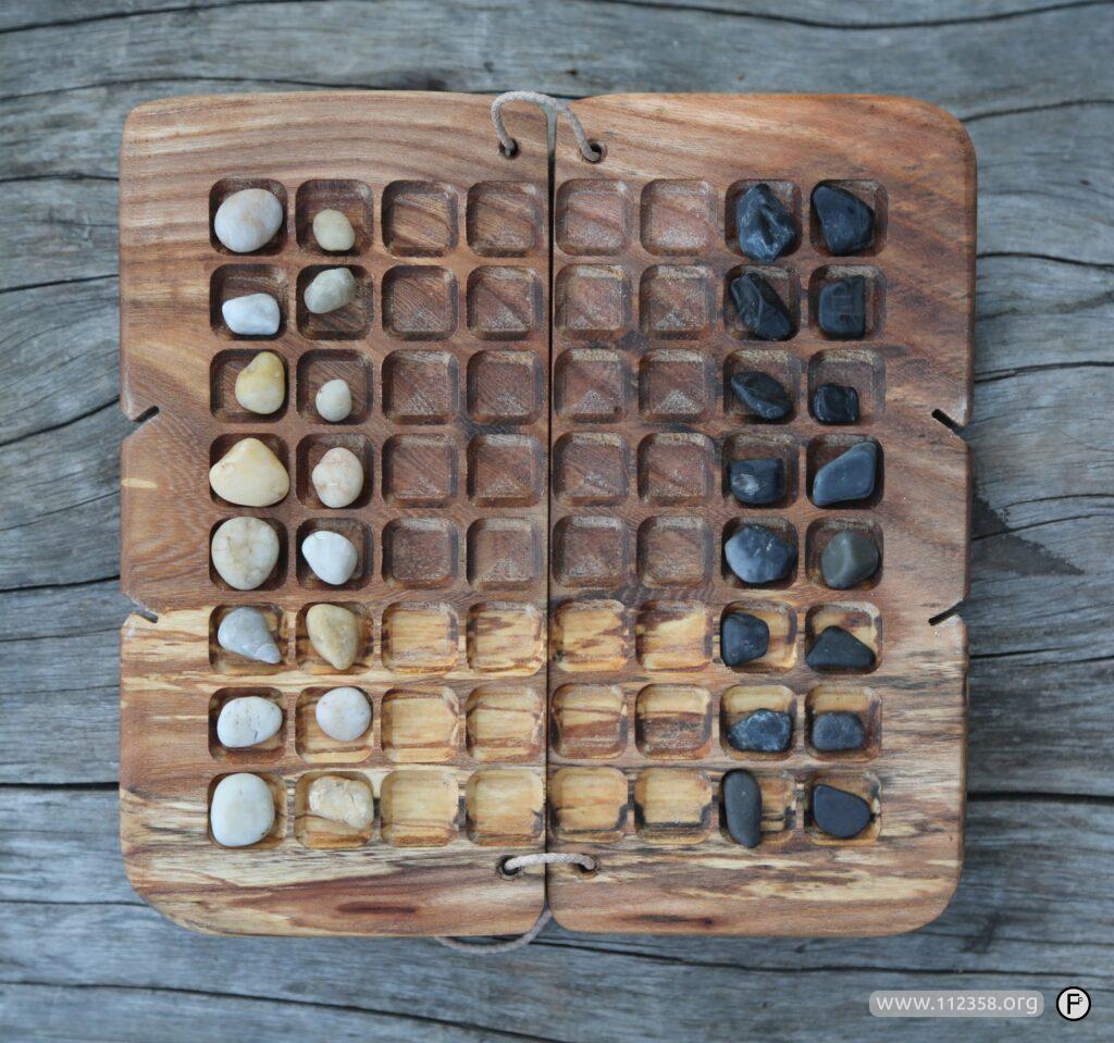 Pierwsze warcaby dla mojej córki zrobiłem z kamyczków i kartki papieru, którą pozaginałem na 16 części.