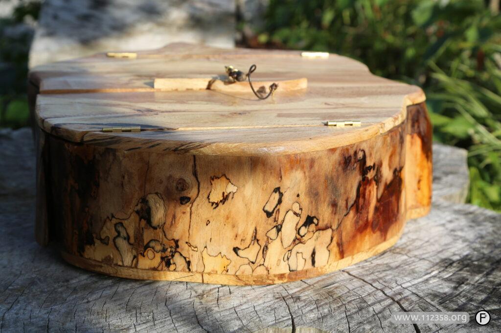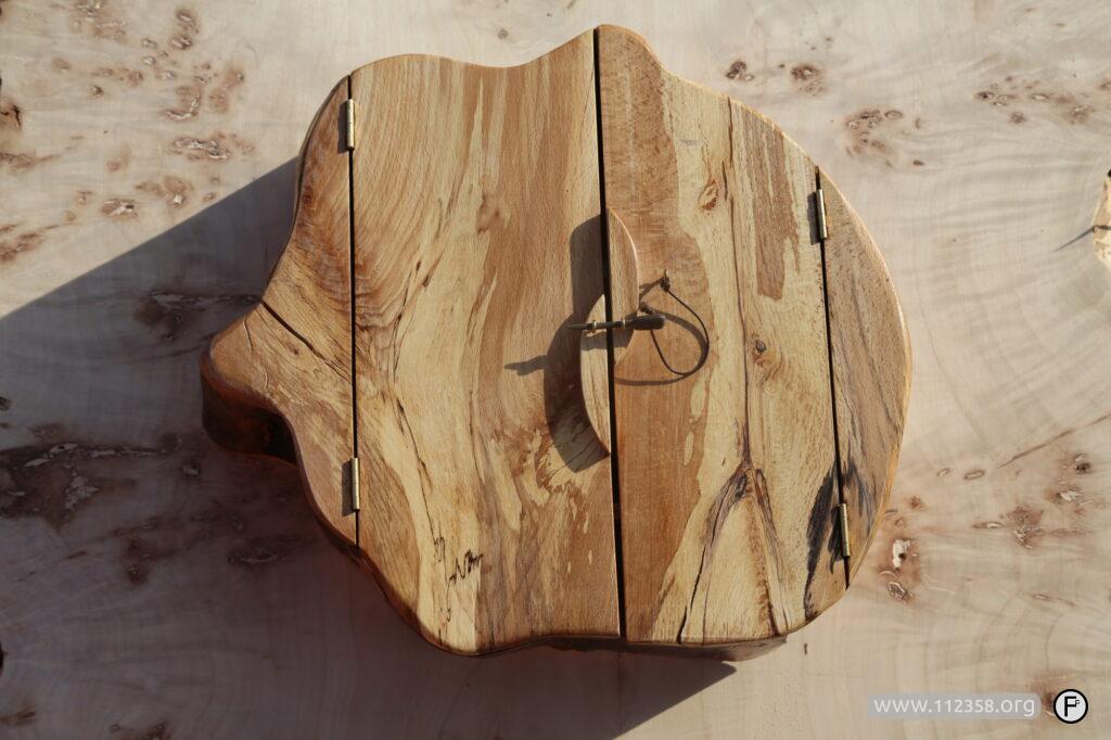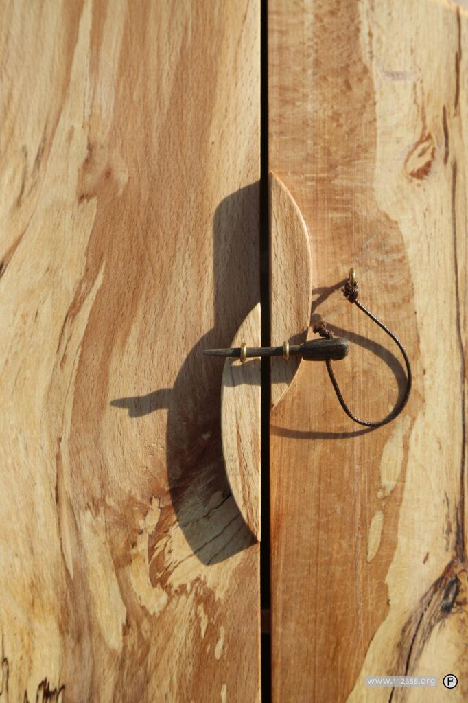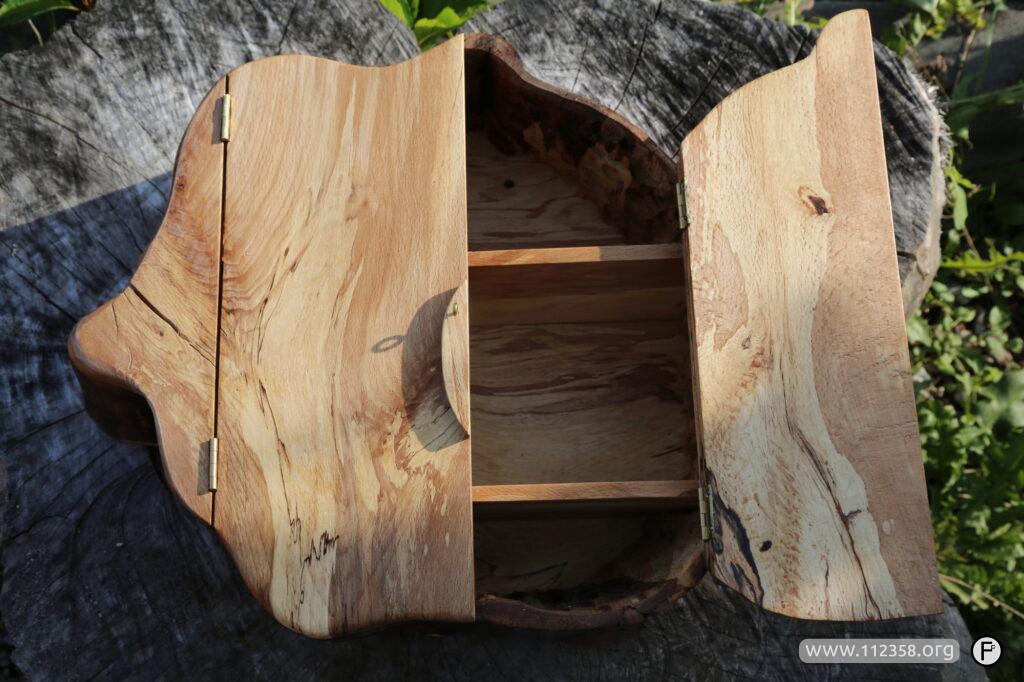 Ręcznie robiona zamykana szafeczka. Naturalne wzory i kolory drewna.